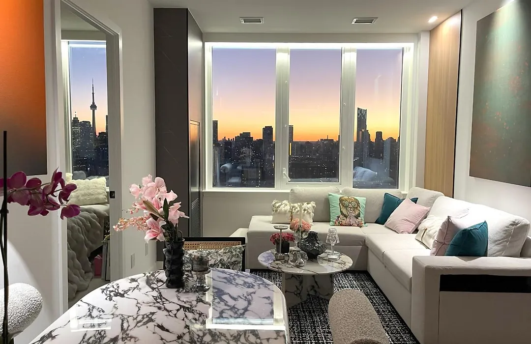 湖の景色を望むDeluxe Penthouse Two Bedrooms Suites Skyline Cn Tower Lakeview Dt トロントホテルは,エバ-グリ-ン・ブリック・ワ-クスから2.7キロメ-トル離れた所の場所に位置しています.